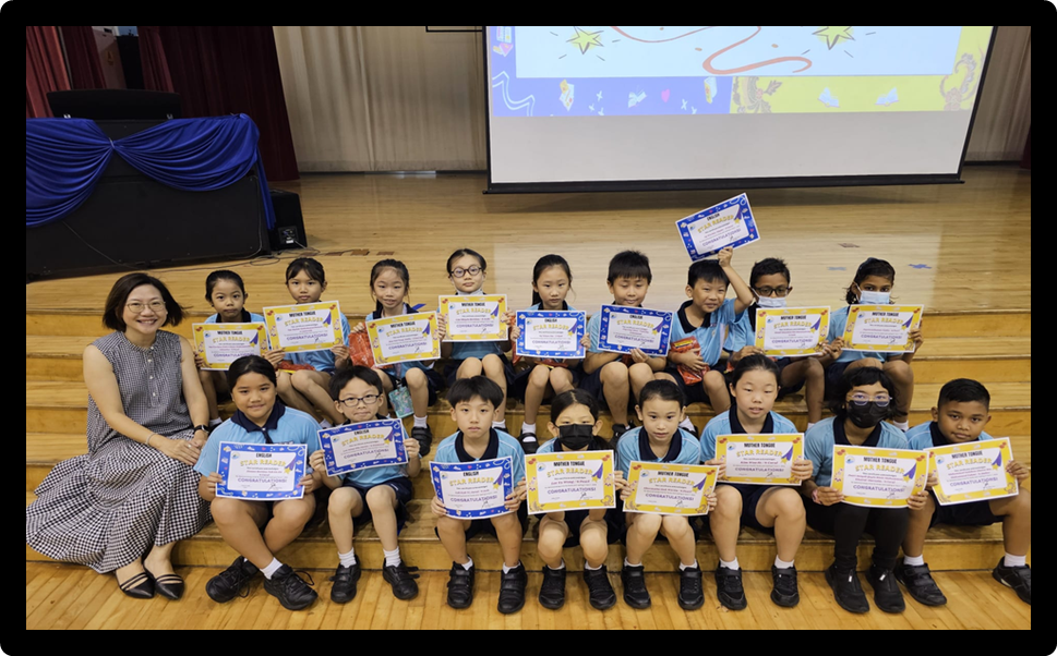 The Star Readers award celebrates our most enthusiastic readers for each term, recognising students who have read the most number of books from the Media Resource Library. This can be either English or Mother Tongue Language books. This motivates students whilst acknowledging their reading achievements.