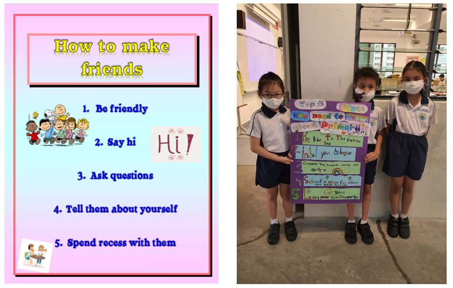 Having completed the first year at primary school, students at the primary 2 level put their heads together to walk down memory lane and reminisce the time when they had newly transited to primary school. Putting the school value of empathy to good use by identifying the needs of incoming primary 1 students, these seniors work on solutions and advice for their juniors to ease this transition for them.