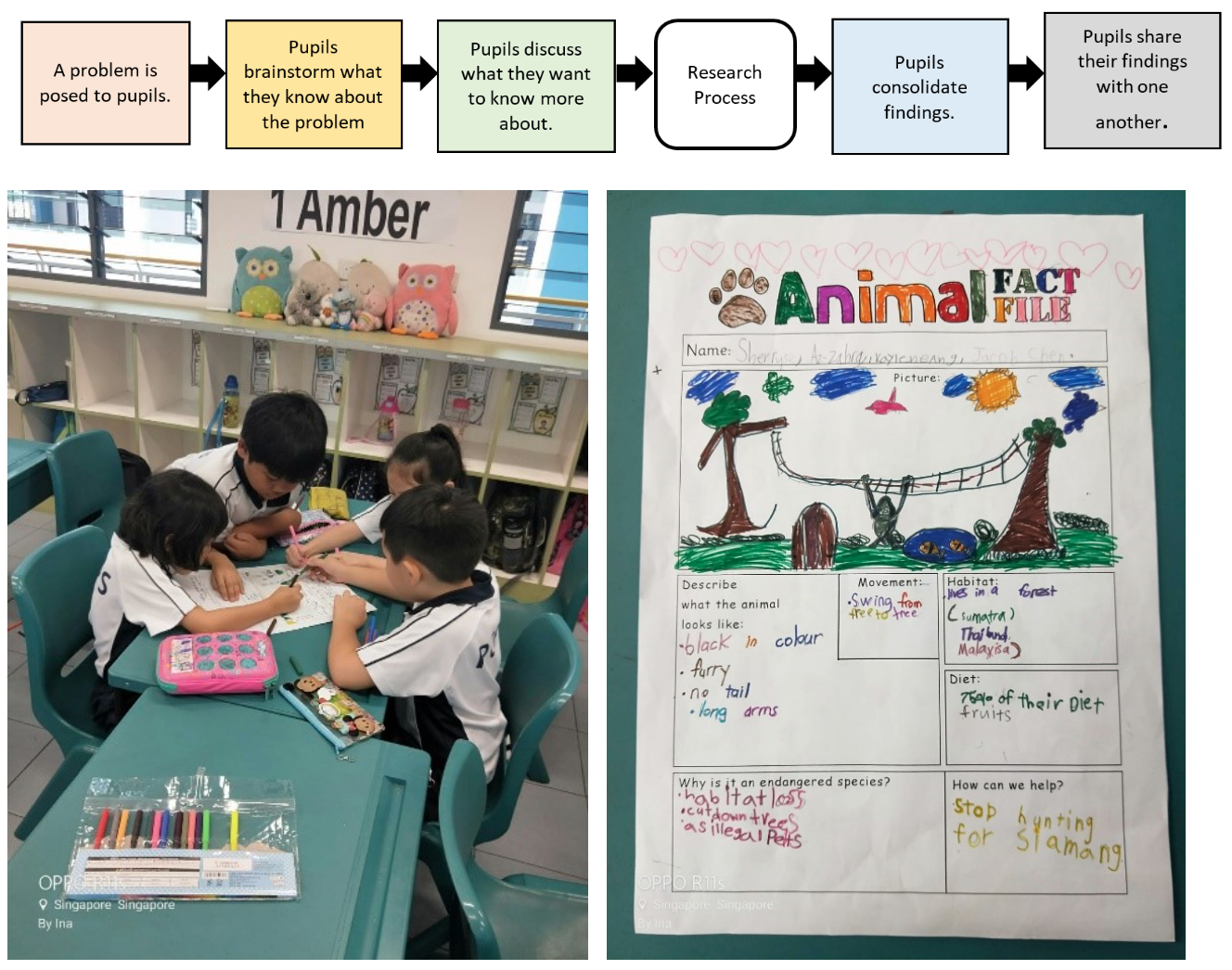 Using problem-based learning (PBL), each P1 class brainstorms and researches on a selected animal. Students then embark on a ‘learning experience’ to learn more about the selected animal.